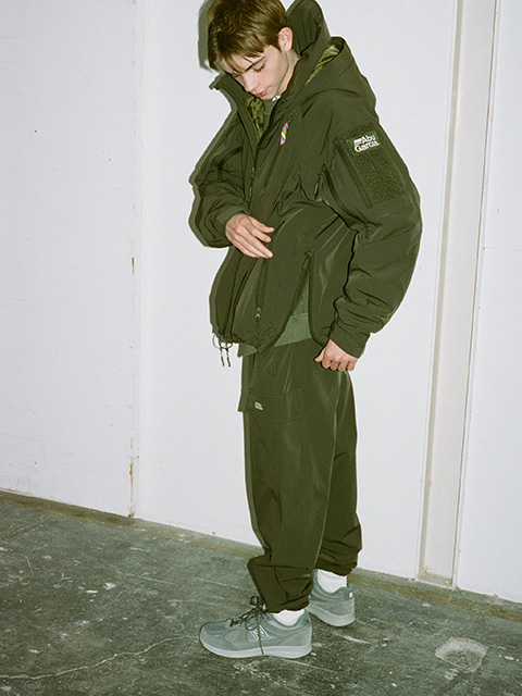 is-nessとコラボレーションしたスペシャルな中綿ジャケット。オリジナルの3層防水ストレッチ生地を使用し、US ARMYのA7をベースにis-nessらしくオーバーサイズにアップデートしています。20AWで爆発的人気となった同モデルに、新色オリーブが加わっています。
