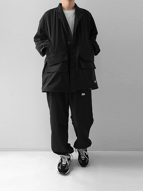 アメリカ軍のトレーニングパンツをモチーフにしたイージーパンツ。オリジナルの3層防水ストレッチ生地を使用し、肌面に総メッシュを施すことで、汗によるべたつきを軽減。釣りやキャンプなどのアクティブシーンをより快適にする使い勝手の良い1本。裾はドローコードとファスナースリットが付いているので、シーンに合わせてシルエット変化が可能です。
