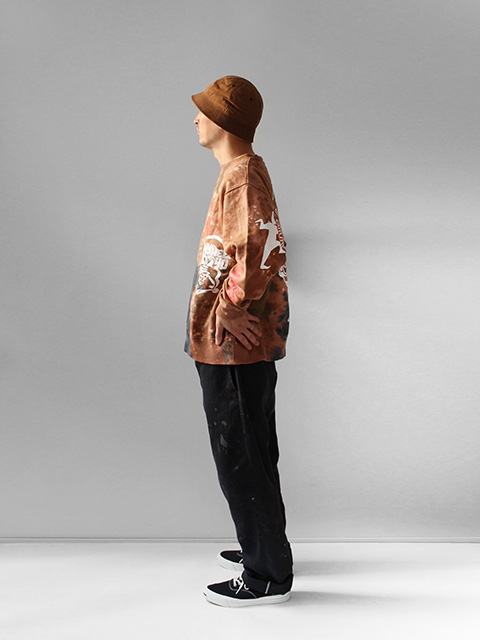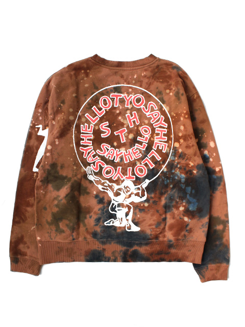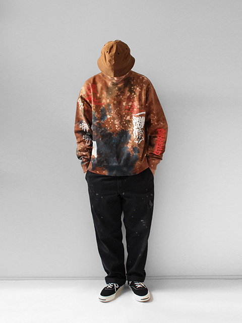 タイダイアーティストDYEとのコラボレーションした裏パイルのリサイクルコットンを使用したスウェットです。ゆったりとしたシルエットです。全面にプリントが入ります。