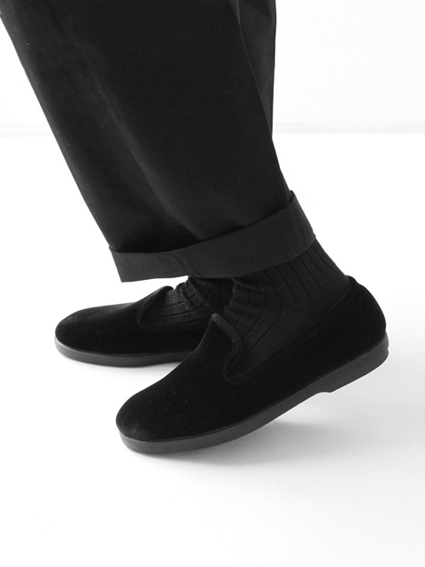 柔らかいベロア素材で足をやさしく包み込み、様々なシーンやコーディネートに合わせていただけるシンプルなデザインです。