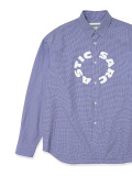 ワッシャー加⼯のタイプライター⽣地を使⽤したシャツ。