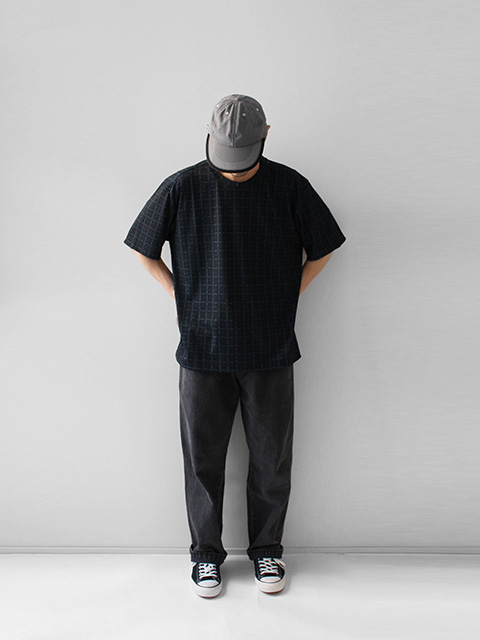ショルダー部分をスポーティーなパターンにしたシンプルなベーシックTEEになります。首元のリブの切れ込みが小さなアクセントになるようなデザインを意識しました。ブラックは、rajabrookeオリジナルチェックになります。