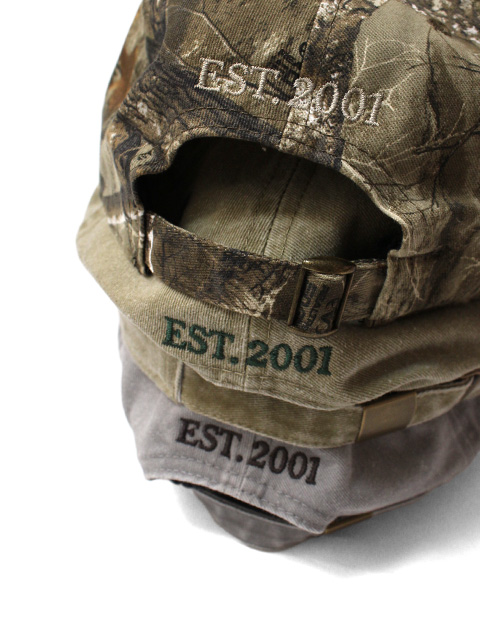 前面にFIELD LOGO、後ろ側にEST. 2001の刺繍の6パネルのコットンツイルキャップ。
