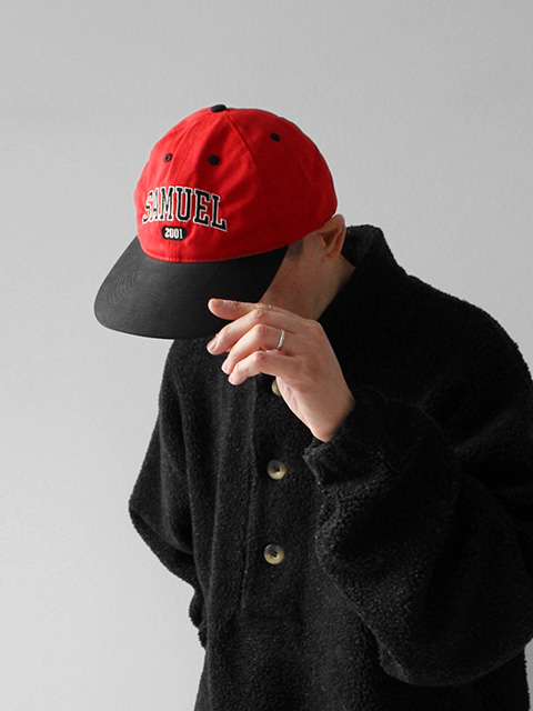 SAMUEL定番ラインのカレッジロゴキャップ。