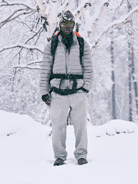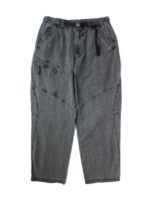 「最近はどちらかというと高機能系アウトドアアイテムが人気だが、ちょっと土臭さや自由なマインドを感じる、クライミング系アウトドアもなぜか惹かれるのは天邪鬼な性格だからでしょうか。そんなちょっと親しみやすいアウトドアブランドに想いを馳せて、製品染めのクライミングパンツを作ってみた。薄手のコットンキャンバスを製品染めしたので硬すぎずにシーズン問わず履ける。3つのファスナーポケット、ウエストベルト付き。製品染めのため他の服に移染する場合がありますのでご注意ください。」