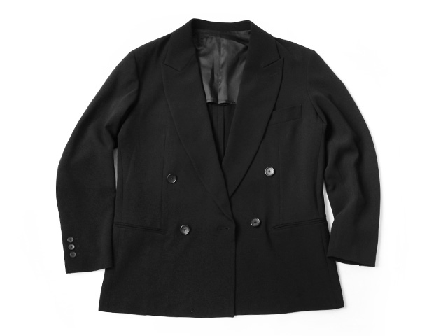 「SEDANには各国にお手本というか憧れのデザイナーがいるのですが、スーツを作るならイタリアの巨匠や日本の暴力系映画監督の世界観をイメージした物をと考えていたのですが、ついに作ってしまいました。押さえるべきはなんといってもゆったりとしたスーツとしてのドレープ感。毛芯を入れたり、手作業でいせ込んだり…といった精密機械のようなスーツではなく、歩いた時の生地の揺れやちょっとしたセクシー感を出すべく、これまたレディースのスーツでよく使われていた憧れの素材、トリアセテートを使って作りました。同素材のパンツもあるのでスーツとしても着ることができます。」