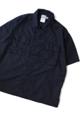 デッドストックのタクティカルシャツの着丈を短くし、肩の取り外したエポレットをサイドアジャスターに付け替えたリメイク半袖シャツ。