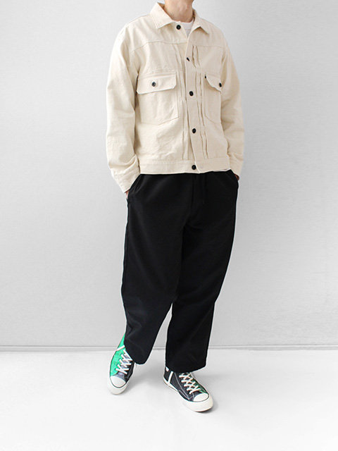 厚手のキャンバス素材で作られており、初めは硬くハリがありますが、洗うたび味のあるクタッとした表情も愉しめる素材感です。。