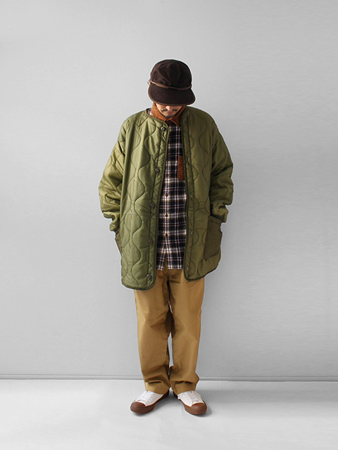 ユーズドのUS軍のFISHTAIL PARKAのライナーキルティングをリメイク/再構築したカーディガンタイプのモデル。