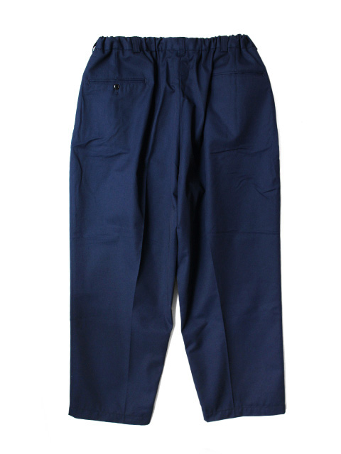速乾性に優れ、ハリ感があり型くずれを起こしにくいタフなコットンポリ素材。形は裾に向かってテーパードがかかり、裾腰回りは意外とスッキリとした綺麗なシルエットです。履き回すのにちょうどよいクリーンなシルエットに上品なネイビーで。活躍度の非常に高いオールシーズン活躍できるトラウザーパンツです。